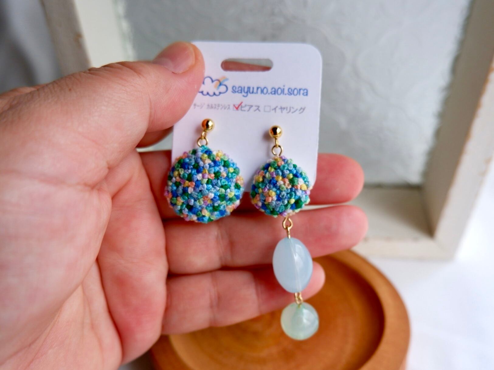 刺繍で仕上げたオリジナルイヤリングです。