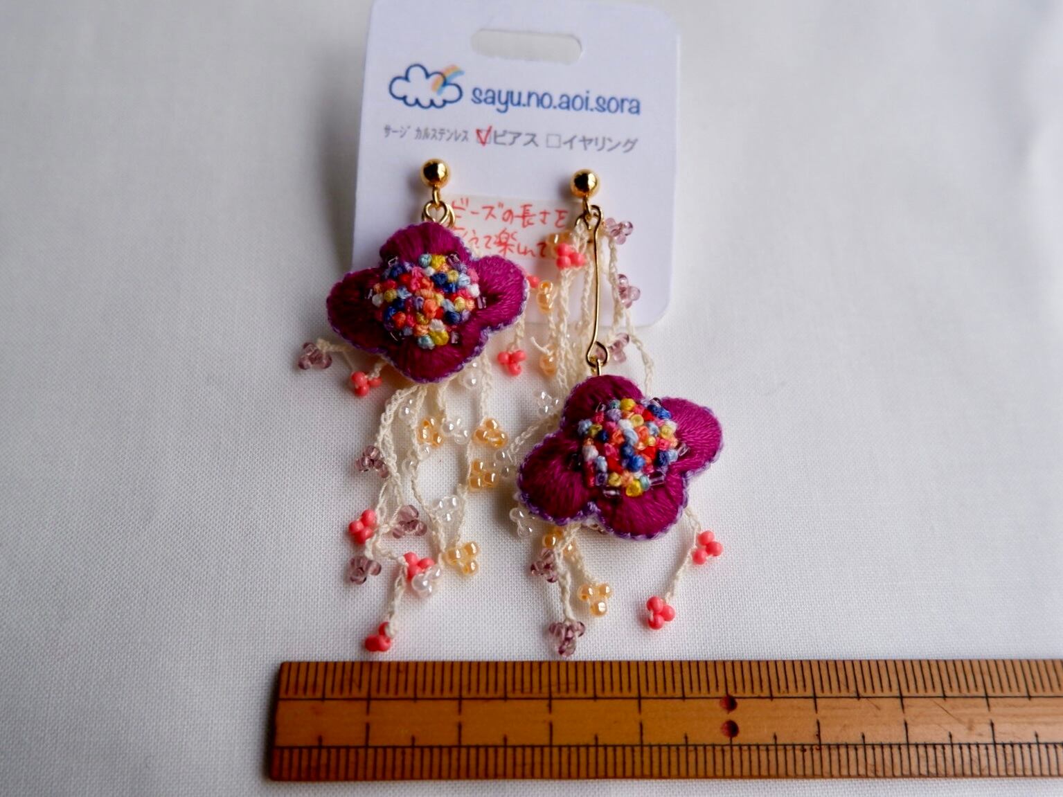 刺繍により仕上げたオリジナルのアクセサリーです。
